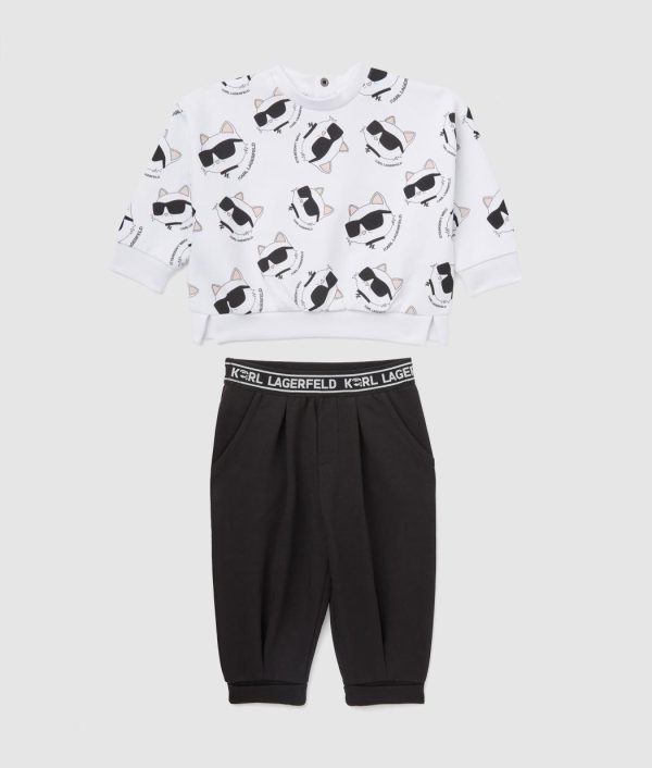Charakterstark und unkompliziert anzuziehen. Dieses passende Set besteht aus einem Sweatshirt mit Allover-Print sowie einer passenden Hose mit Logoverzierung am Bund.