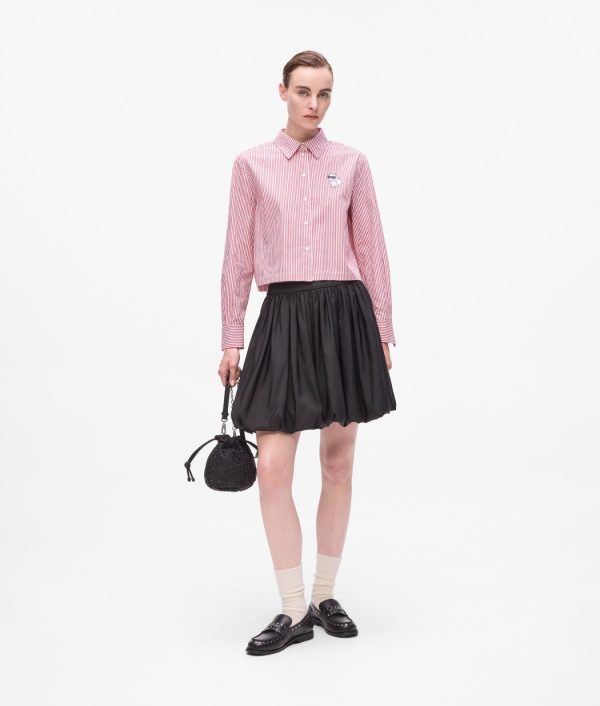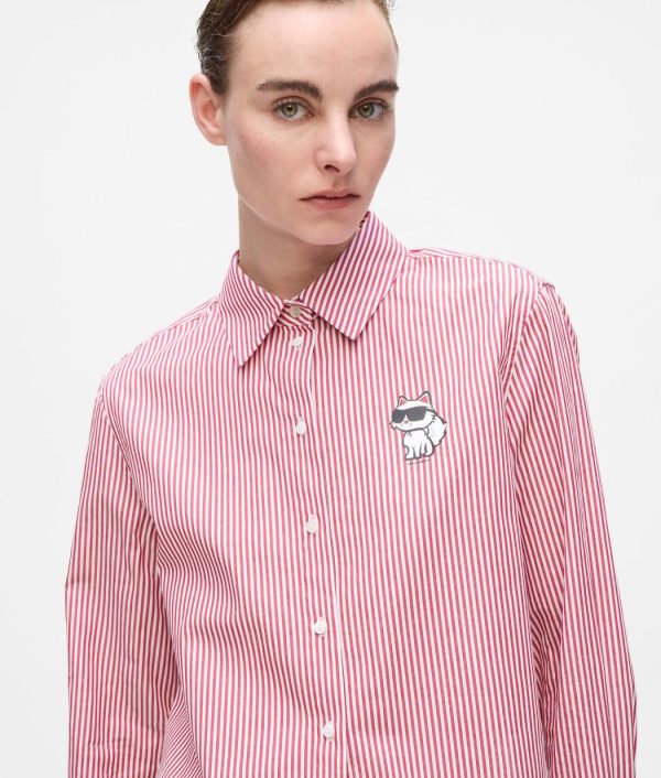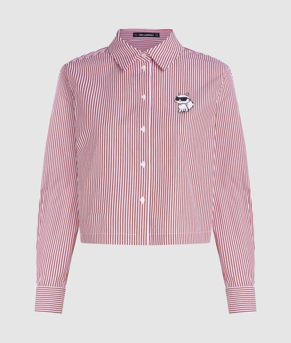 Dieses Baumwollhemd hat eine verspielte, kurze Passform, die durch Knöpfe mit KARL-Logo, einer IKON Choupette-Grafik und ein kontrastierendes Logo auffällig akzentuiert wird.