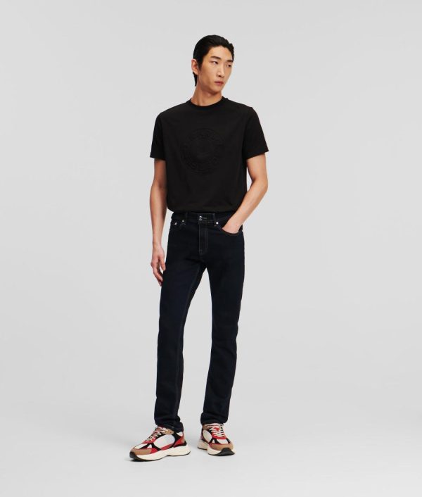 Veredeln Sie Ihren Look mit dieser klassischen 5-Pocket-Jeans von KARL LAGERFELD. Ein Aufnäher mit Logo am Bund verleiht Ihrem Look einen Hauch von Luxus.