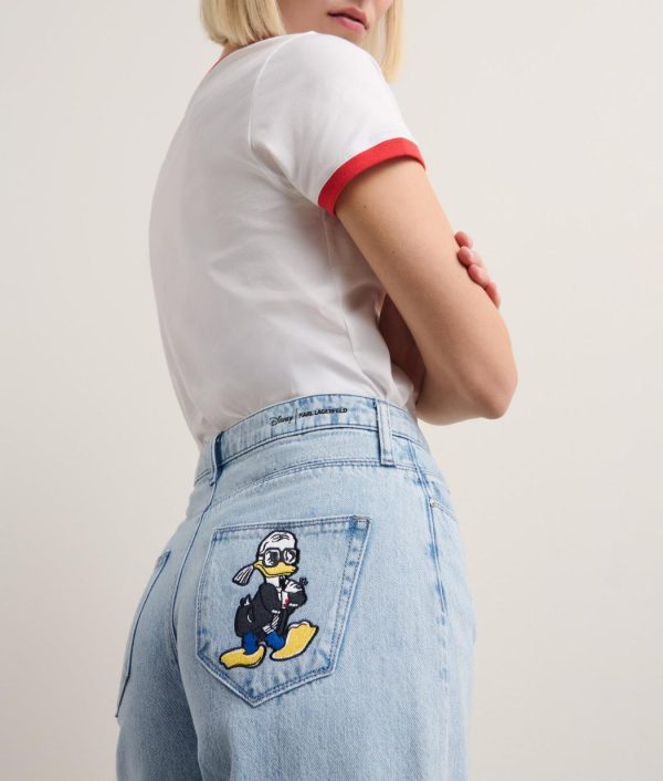 Verleihen Sie Ihrem Alltagsoutfit mit dieser weit geschnittenen Jeans aus der Disney x KARL LAGERFELD Kollektion einen verspielten Touch. Das linke Bein ist mit einer kontrastierende Kollaborations-Stickerei versehen, die linke Gesäßtasche ziert das Motiv aus dem Archiv von Karl Lagerfeld. Mit einem Reißverschluss und dem klassischen Five-Pocket-Design bietet sie einen zeitlosen Stil mit einzigartigen Details.