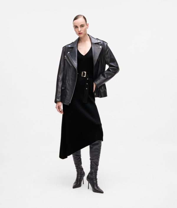 Entdecke mühelose Eleganz in diesem Strick-Maxikleid. Der asymmetrische Saum verleiht ein elegantes Aussehen, während der V-Ausschnitt deine Silhouette betont. Ein taillierter Gürtel hebt die Form dieses figurbetonten Kleidungsstücks noch weiter hervor.