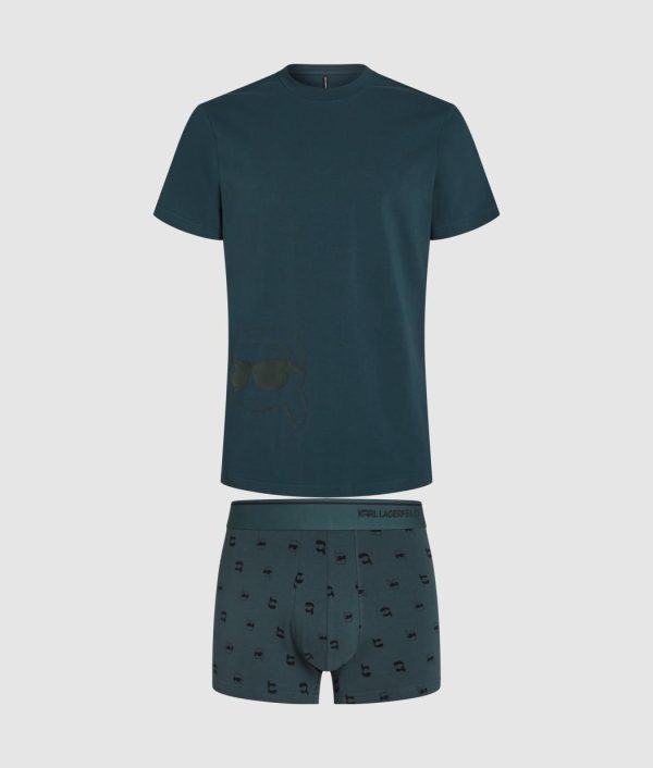 Dieses Pyjama-Set bietet Komfort mit KARL-Attitüde. Das T-Shirt mit Rundhalsausschnitt zeigt ein auffälliges IKON-Motiv, während die dazu passende Boxershorts mit einem Markenbund und einem IKON-Allover-Print versehen ist. & nbsp;