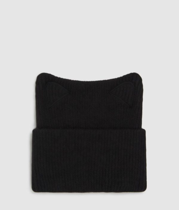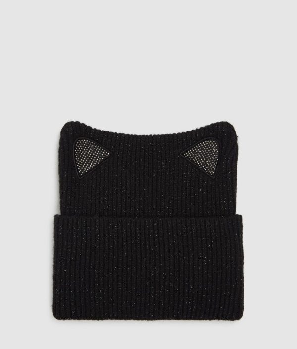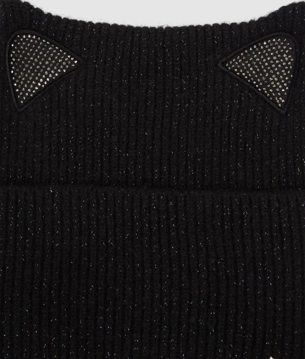 Eine verspielte gestrickte Mütze mit spitzen Katzenohren und einer gemütlichen Rippenoberfläche, perfekt, um deinem Alltagsstil einen Hauch von Verspieltheit zu verleihen.