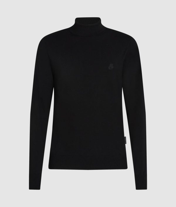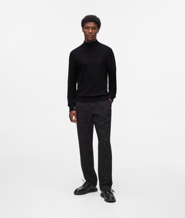Dieser raffinierte Rollkragenpullover bietet ein elegantes Design mit gerippten Details, die die Silhouette bequem umschließen. Die farblich passende Karl Kameo-Stickerei verleiht einen subtilen Hauch von Eleganz.