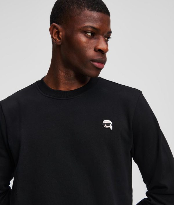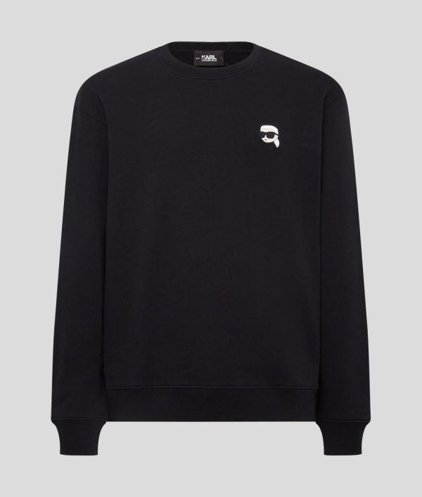 Ein äußerst vielseitiges Sweatshirt mit klassischem Rundhalsausschnitt und leicht gerippten Details für eine angenehmere Passform und Komfort. Der IKON Karl-Kautschukaufnäher verleiht ihm einen Hauch von Verspieltheit, während das charakteristische KARL LAGERFELD-Logo dezent den hinteren Saum ziert.